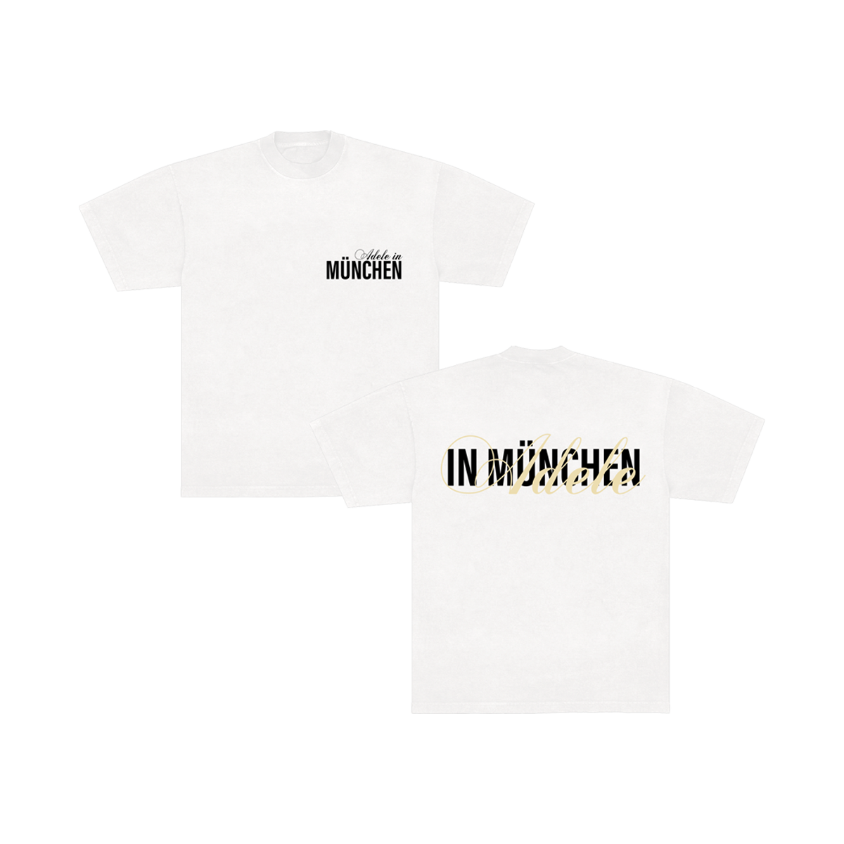 White short sleeve tee with Adele in Munchen on the front back. 100% cotton, unisex fit.